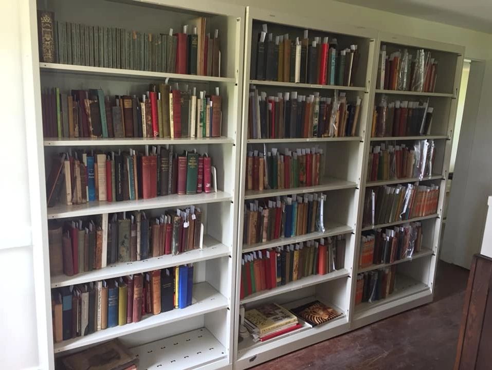 Boxes of books that have been catalogued and sorted by Volunteer Joanne Ferguson